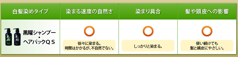 黒耀(こくよう)のシャンプーQSとヘアパックQSは奄美大島の車輪梅エキスを配合した白髪染めで、ゆっくり染まるのが特徴となっており、髪や頭皮にダメージを与えないよう、一気に染めるのではなく少しずつ染まっていく白髪染めなので安心です。毎日使える黒耀シャンプーとなっていますので、まずはお試し下さい。